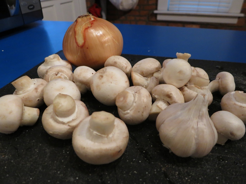 Mushrooms, onions, and garlic: these will be the tripod upon which your thighs shall rest (literally).
