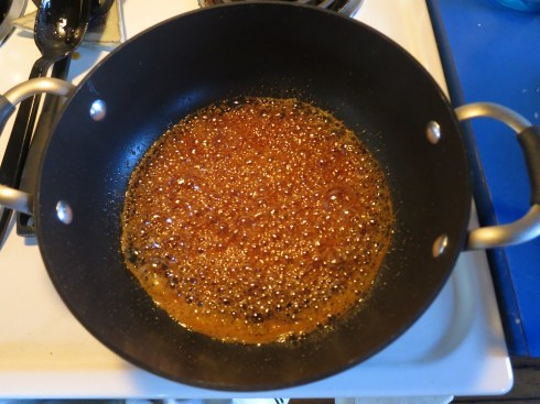 1. Bring the maple syrup to a boil in a 4-quart saucepan over medium-high heat. Reduce the heat to medium and continue boiling for 8 minutes, or until it has reduced by one-half and has begun to darken around the edges.