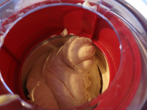 2. Spin until thick and creamy (25-30 minutes. The ice cream should pull away from the side of the canister when done.)