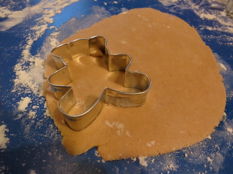 Cutting out a lebkuchen bear. The dough is rather sticky, so make sure your counter is well floured!