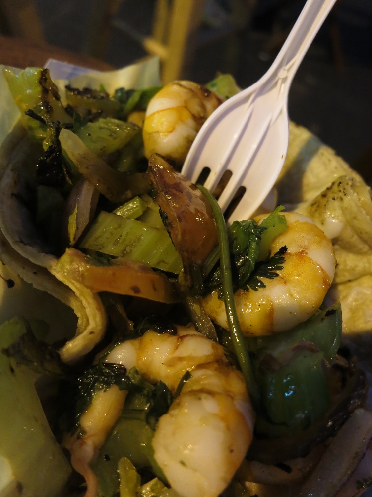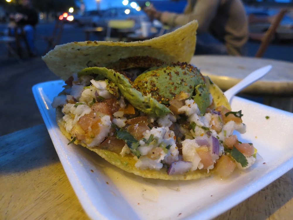 I also tried their “gobernador” taco, which was loaded with shrimp, celery, peppers, cilantro cheese and other vegetables. It was so stuffed, a fork was required. Tania opted for the ceviche tostada, which she also raved about.