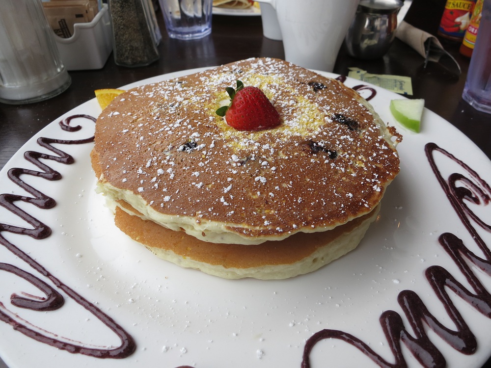 Tania’s sweet tooth is the yin to my breakfast palate’s yang. She got the cornmeal blueberry pancakes. Tania loves pancakes. Especially ones with cornmeal. And with things, like fruit, in them.