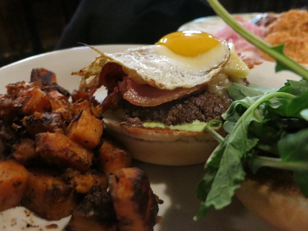 Yak Burger with Egg, Bacon came with a side of really delicious sweet potatoes. (Watch out, the yolk is runny!)