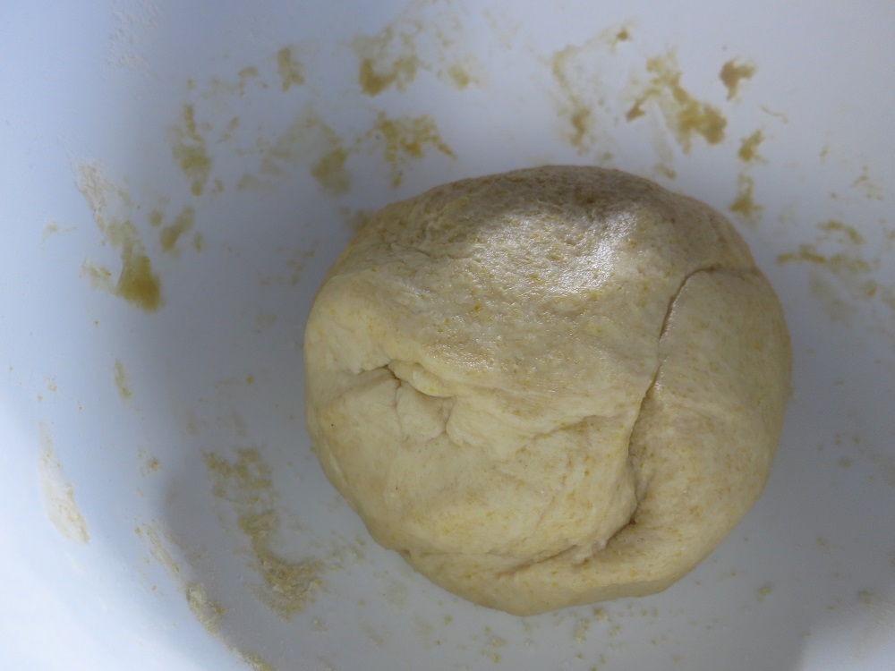 Pizza dough — with cornmeal. I happen to think it’s delicious, but in some camps, the presence of cornmeal is heresy.