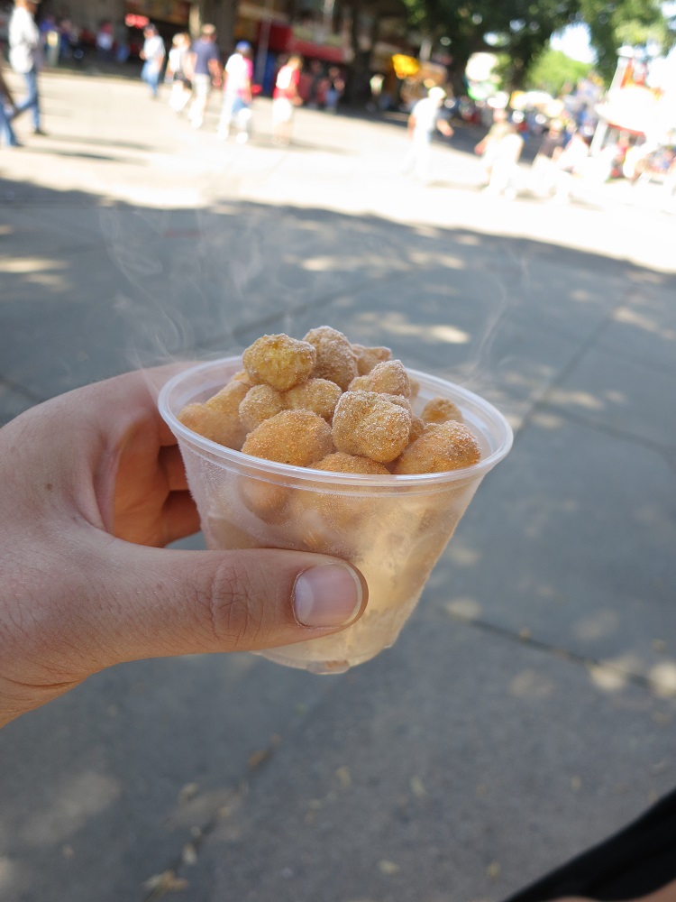 One of the reasons for going to Minnesota in the first place was to visit the Minnesota State Fair. Tania claimed it was awesome, so of course I had to see for myself. The fair is well-known for certain food offerings: giant tubs of cookies, Pronto Pups (the original batter-dipped hotdog, allegedly pre-dating the corndog), butter dipped corn, and of course, cheese curds. I was about to say that we didn’t try them all, but I realized we did. Everything but the cookies that is.