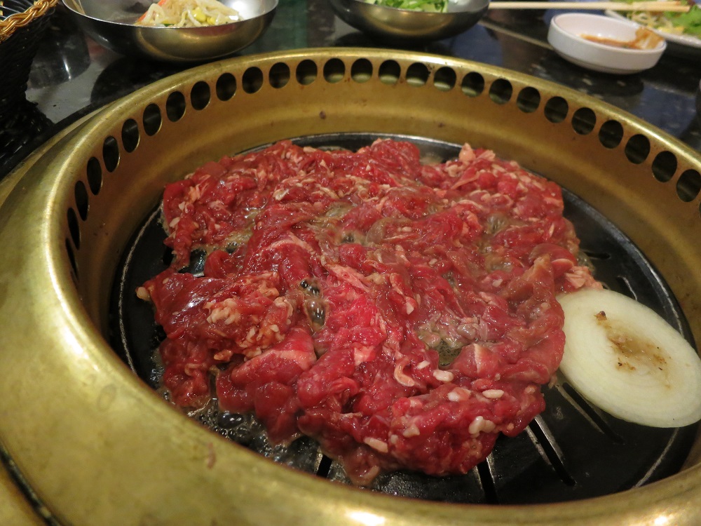 San-Su, just down the road from Tandoori Grill, was the last stop on the tour. San-Su is a traditional Korean BBQ restaurant, meaning that you can cook your meats at the table. We were given the chance to try two different meats: kalbi and bulgolgi. I’ve had these both before in various forms. (Indeed I’d be surprised if most people who have had Korean food have not had bulgolgi at the very least—if not kalbi as well.) The kalbi especially was excellent. Tender and well flavored, I could have happily eaten more of it. As for the bulgolgi, it was clearly the favorite of some of the other tour participants.