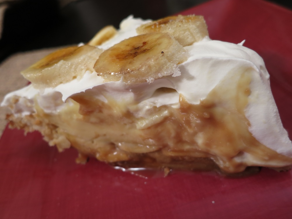 The final touch that really put this pie over the top was the bruleed banana slices. The added crunchy texture took this pie from merely just good to phenomenal. That being said, this is definitely a special occasion recipe. It was incredibly time consuming. Here’s a list of the things that had to be made from scratch: pie crust, rum caramel sauce, custard, bruleed banana slices. And that’s even omitting the whipped cream.